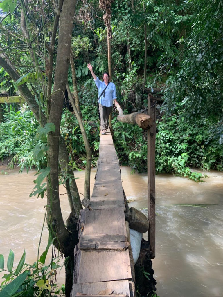 Pictured here I am crossing a bridge the farmer built to get to his farm. I was told the handle hand been recently installed. (Phew)